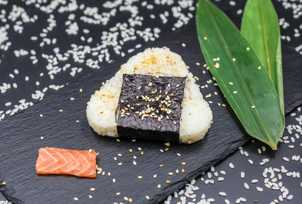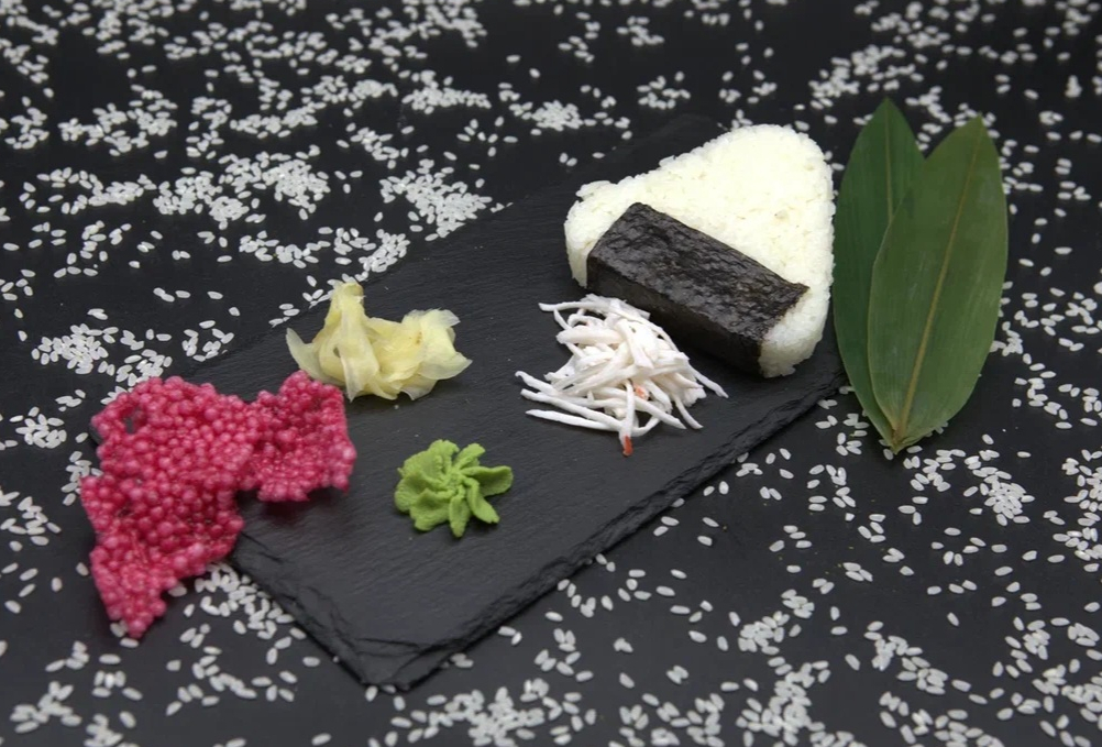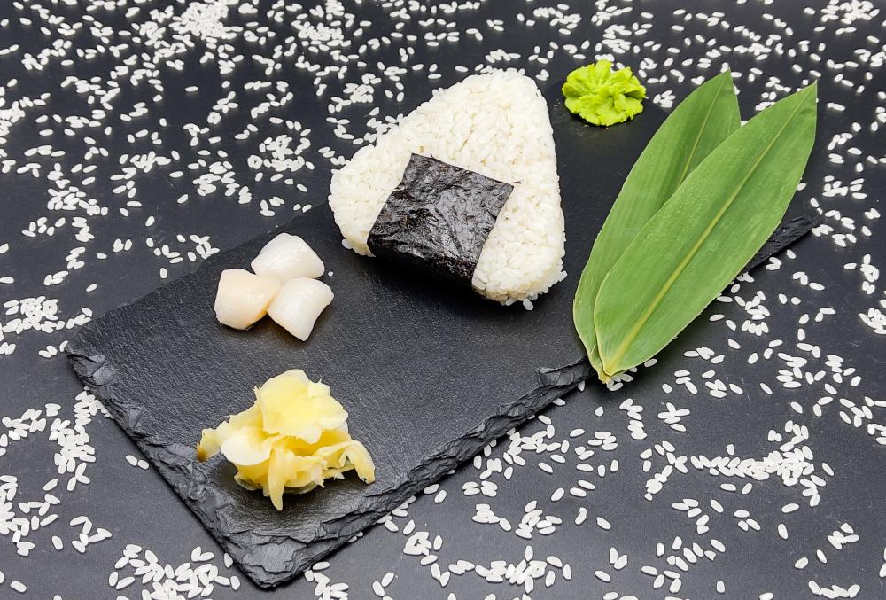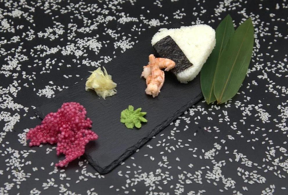 рис, нори, креветка отварная, соус имбирно-чесночный,