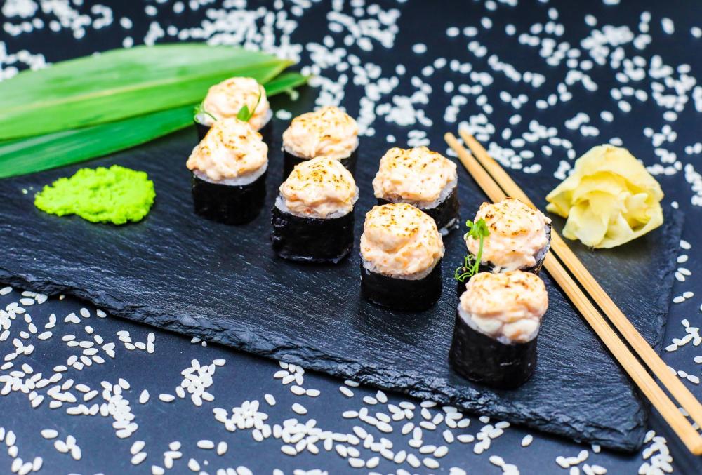 тобико, сыр гауда, соус терияки, кунжут, японский майонез