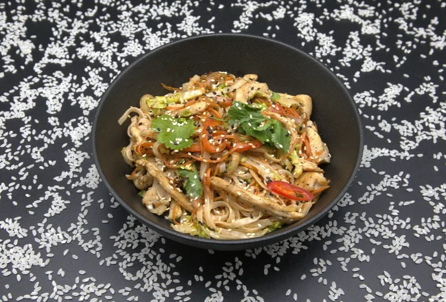 лапша фунчоза, куриное филе, лук репчатый, морковь,