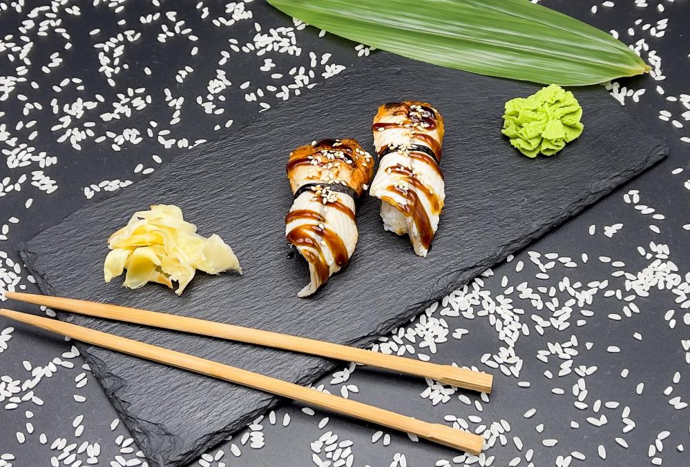 рис, угорь, нори, кунжут, соус унаги